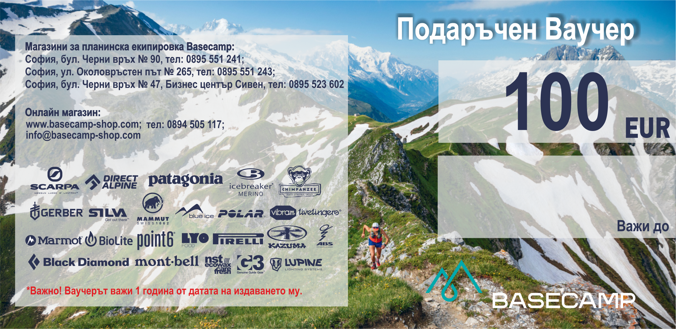 Подаръчен ваучер за магазини Basecamp, подходящ подарък както за специални поводи като годишнини, рождени дни, семейни празници, така и за колеги, бизнес партньори и др.