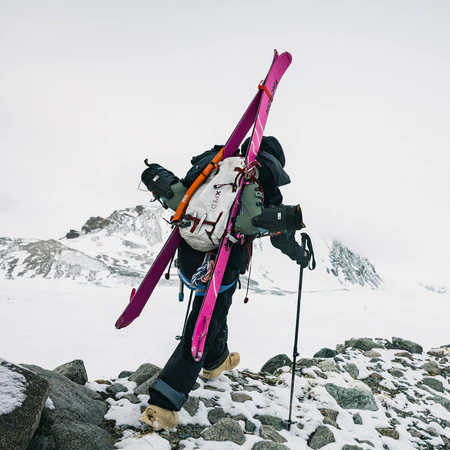 Лекото ядро от дърво Karuba, комбинирано с пълен карбонов плат, осигурява здравина и стабилност без излишно тегло, което прави изкачването по-лесно, а спускането — по-отзивчиво и забавно. Рокер профилът на върха и опашката подобрява плаваемостта и започването на завоя, докато плоската опашка и средната твърдост осигуряват надеждно сцепление и контрол при променливи снежни условия.